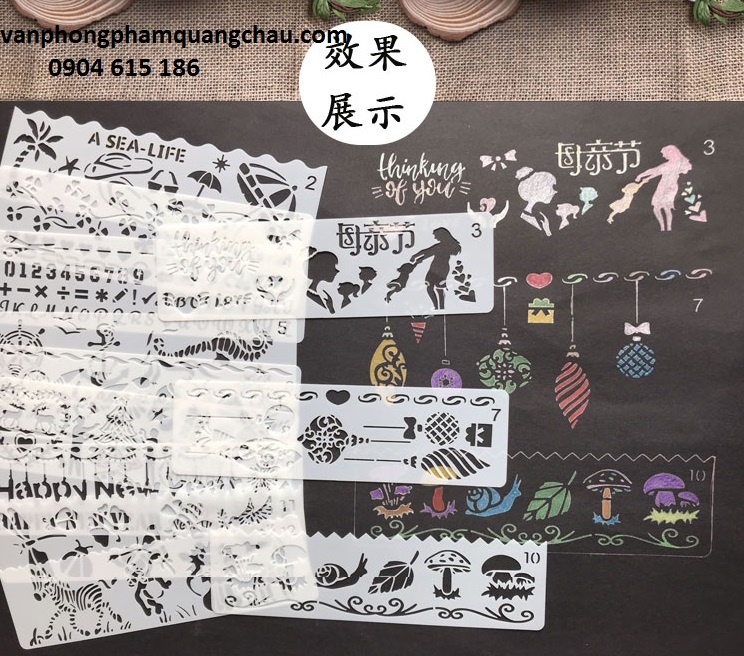 Pet Stencil - Là sp khuôn hình dùng trang trí tạo nền đẹp trên các bề mặt , thích hợp với nhiều loại màu, sơn, bút vẽ... Tái sử dụng nhiều lần .