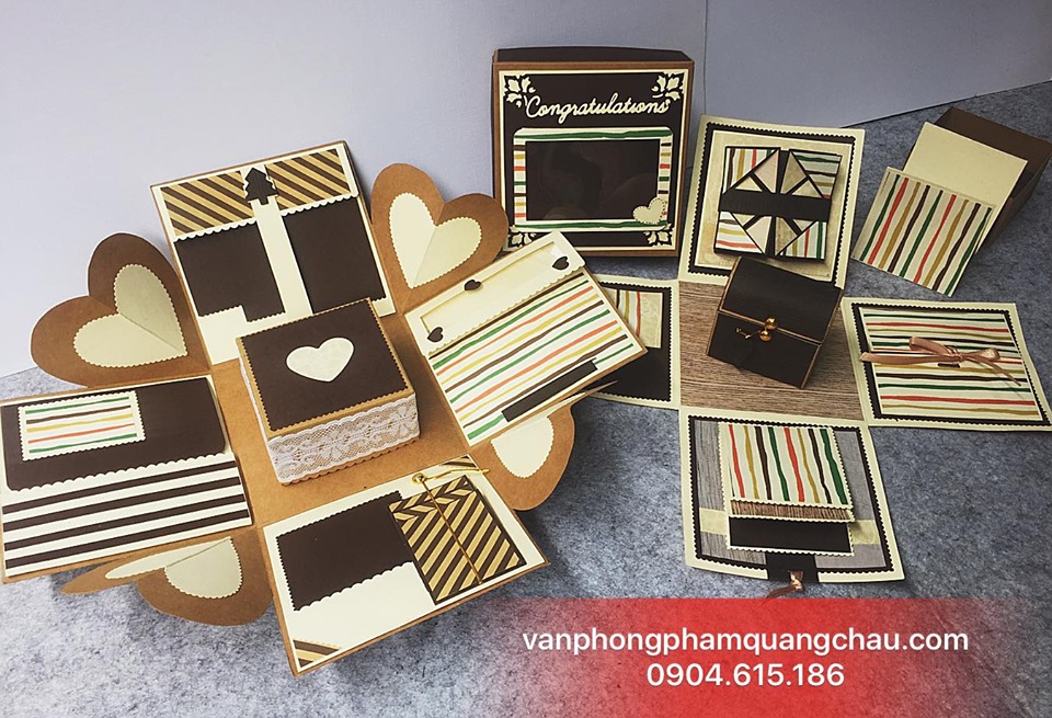 Hộp love box với tông màu nâu kem với 2 lớp cùng hộp đựng  thích hợp để bạn dán ảnh tặng người thân bạn bè vào dịp đặc biệt