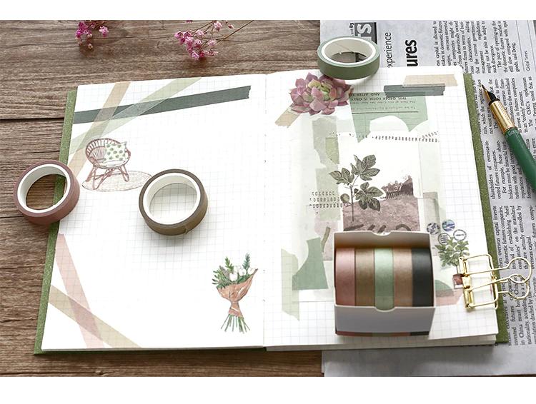 Bộ băng dính 5 washi theo tông màu giúp bạn dễ dàng phối màu trang trí sổ, scrapbook, bullet journal...