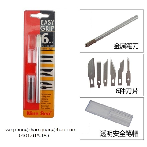 - Bộ dao cán inox, kèm 06 lưỡi thay thế.