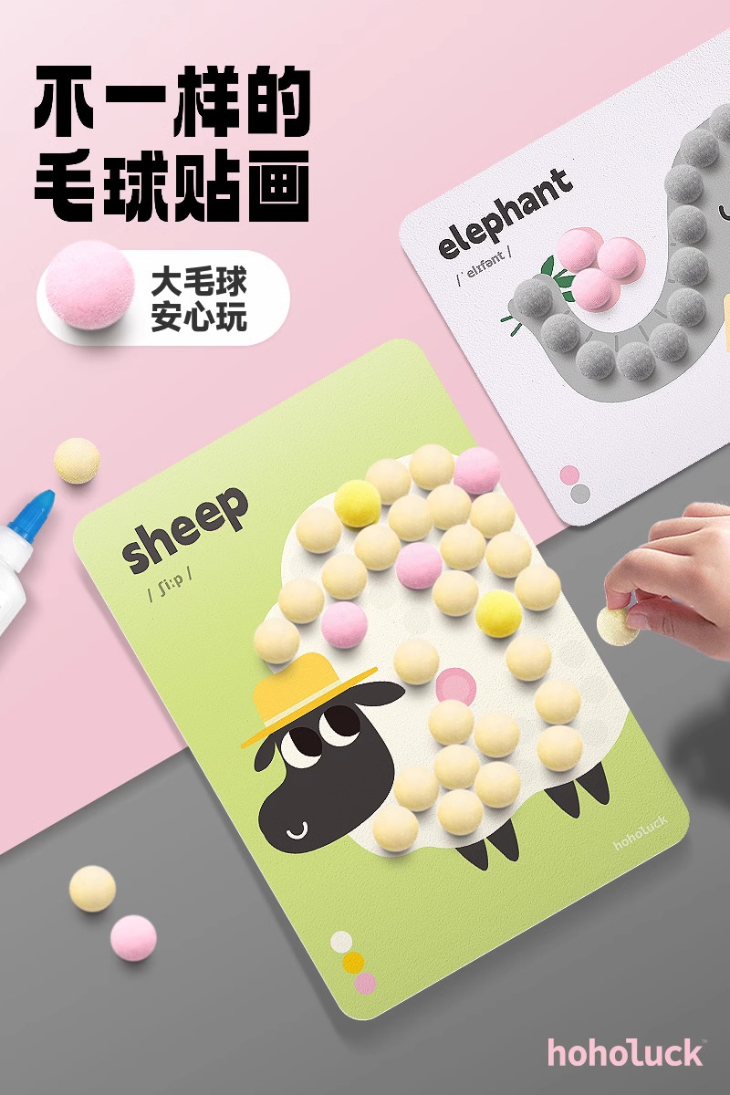 - 8 tranh ( size 14.5*21 cm) kèm pompom nhiều màu tương ứng mỗi tranh