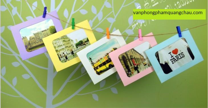 Bộ sản phẩm bao gồm 7 kẹp gỗ + 7 khung ảnh giấy bìa cứng màu sắc rực rỡ