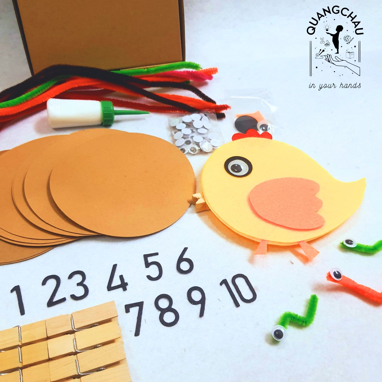 BỘ KIT HỌC LIỆU GÀ CON HỌC SỐ là Bộ học liệu dành cho trẻ từ 2.5 đến 5 tuổi. Giúp con nhận biết Số, số lượng, học các phép tính Cộng, Trừ, Nhân, Chia...