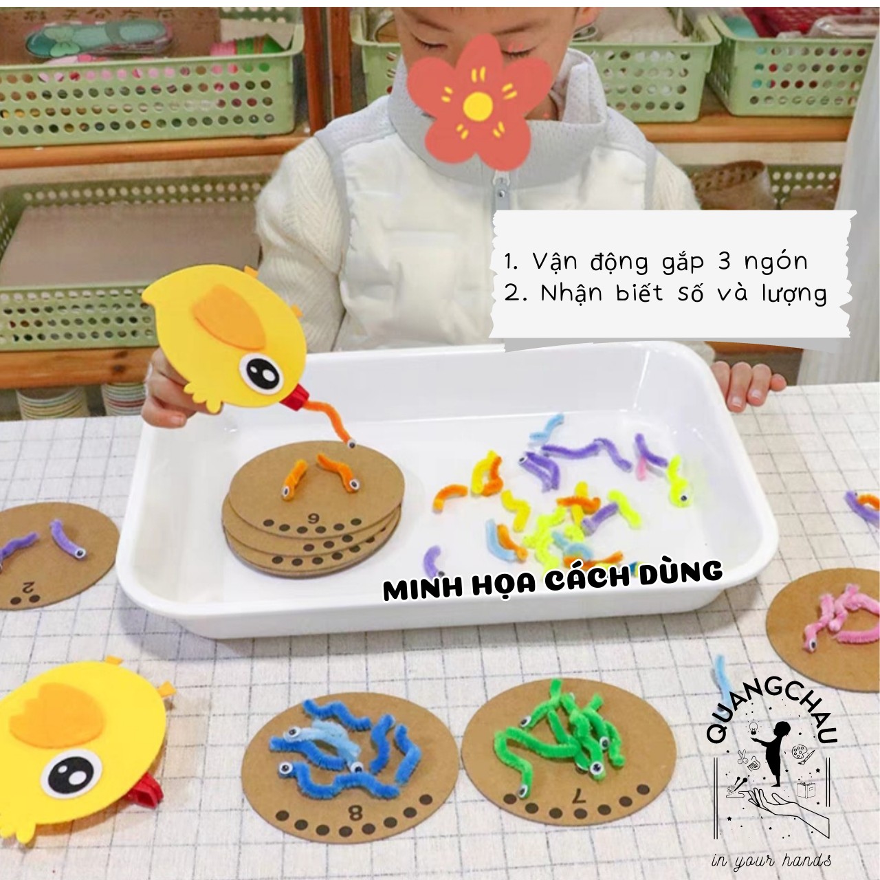- Vận động tinh cho tay (3 ngón gắp, tiền kỹ năng tập viết và cầm bút)