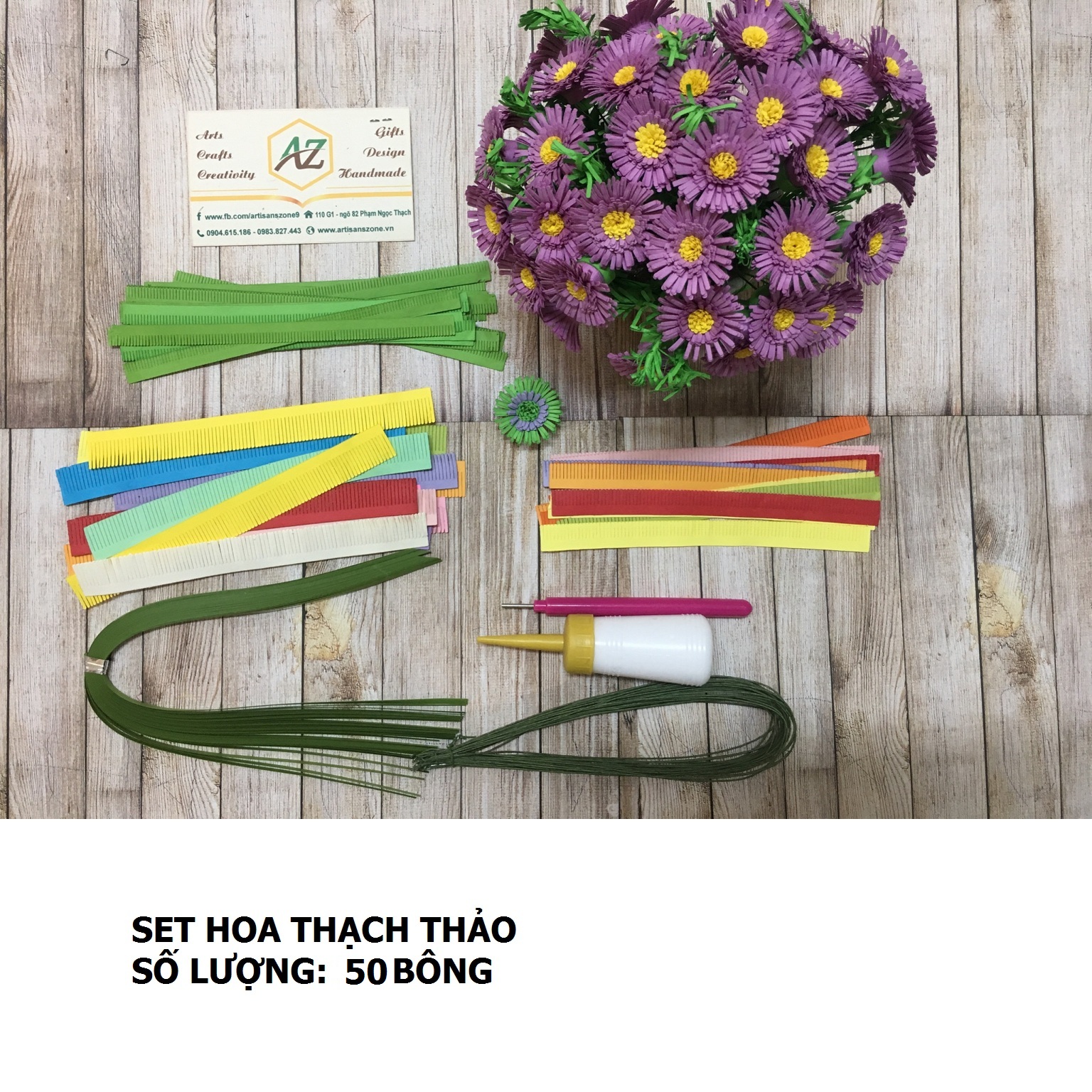 BỘ NGUYÊN LIỆU LÀM HOA THẠCH THẢO 4 LỚP QUILLING 50 BÔNG_QC36.1