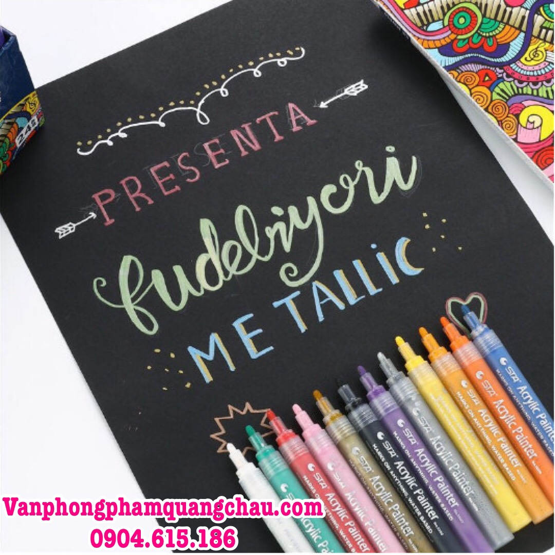 Bút sơn acrylic STA nét 2mm, viết được trên mọi bề mặt: Kim loại, Cao su, Gỗ, Vải, Thuỷ tinh, Nhựa…..