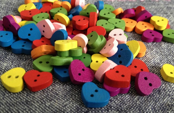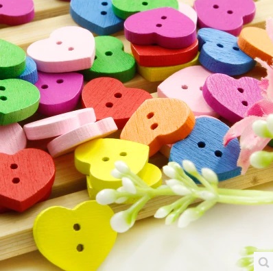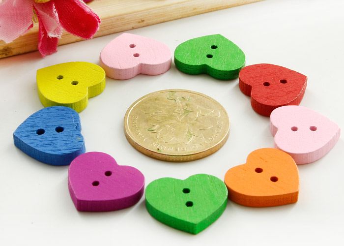 Túi cúc gỗ tim sắc màu (14 cúc)_CH18