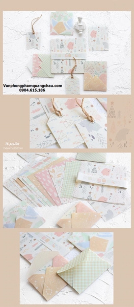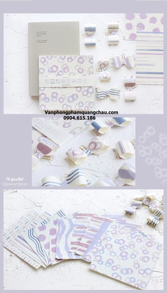 - Số lượng: 01 túi/ 16 tờ, bao gồm 08 mẫu họa tiết khác nhau, mỗi mẫu 02 tờ