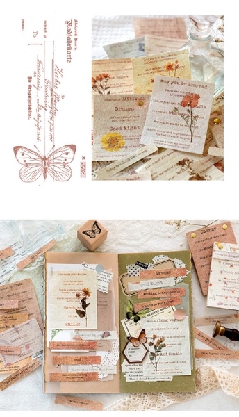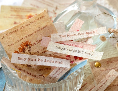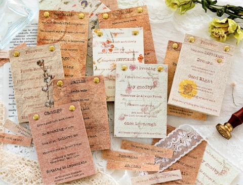 Giấy được làm phỏng theo giấy dó (thô, sần), chất giấy dày, màu sắc rất vintage, họa tiết hoa kết hợp quote, chữ ý nghĩa. Đặc biệt bạn có thể xé rời từng câu quote.