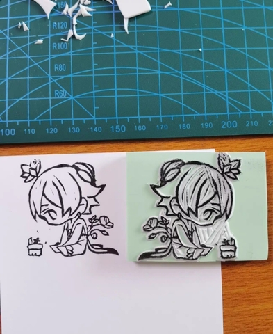 - Khắc, tỉa bằng tay các hình dấu in lên mọi chất liệu, Khắc dấu đóng lên bề mặt gỗ, trên giấy, trên nilon đều được, dùng mực dầu không phai sắc nét. Không bị co cho bản khắc sắc nét, các nét nhỏ không bị răn, mịn dai, tạo những bản khắc sắc nét ngay cả những nội dung, chi tiết nhỏ nhất.