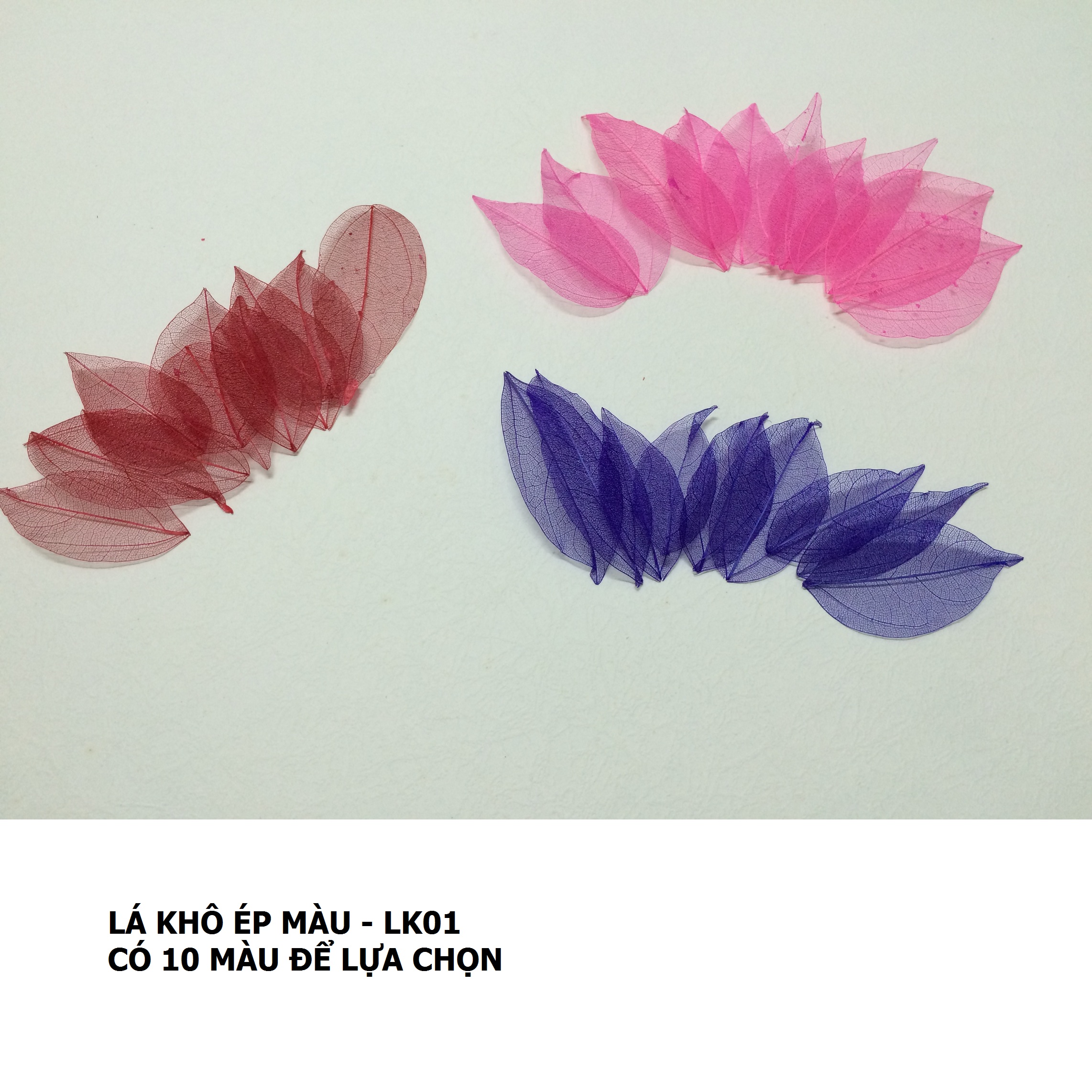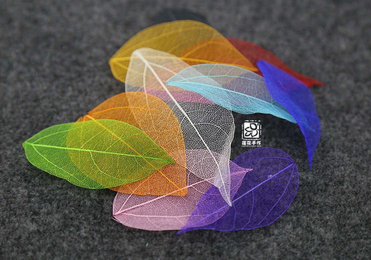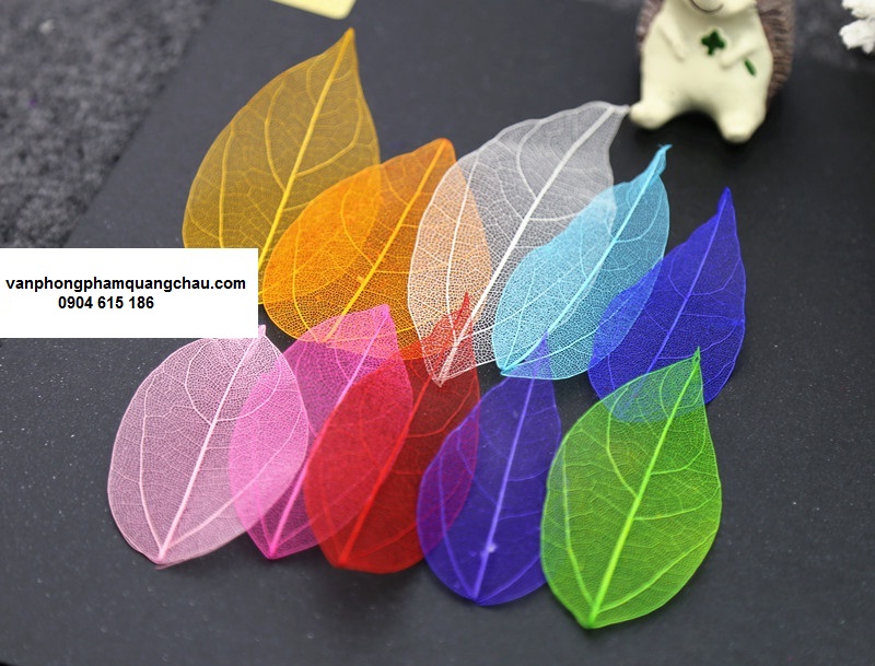 Sản phẩm từ lá thật được ép khô , nhuộm màu tươi sáng, dùng để trang trí album , thiệp, ..