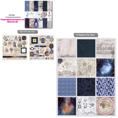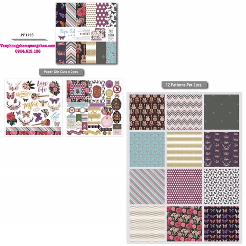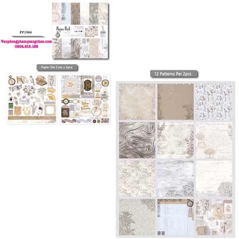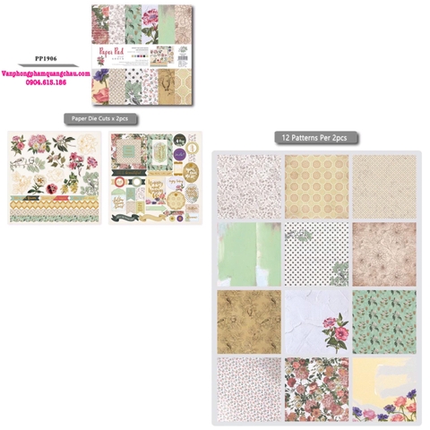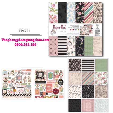 * BỘ SẢN PHẨM BAO GỒM: 02 tờ sticker + 24 tờ giấy họa tiết chia đều cho 12 mẫu
