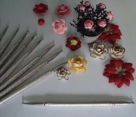 - Đây là dụng cụ làm hoa giấy có hai đầu, một to, một nhỏ, giúp làm cong cánh hoa, tạo gân lá, gân cánh hoa, tạo độ nổi cho nơ, làm hộp giấy, v.v... một cách chuyên nghiệp hơn.