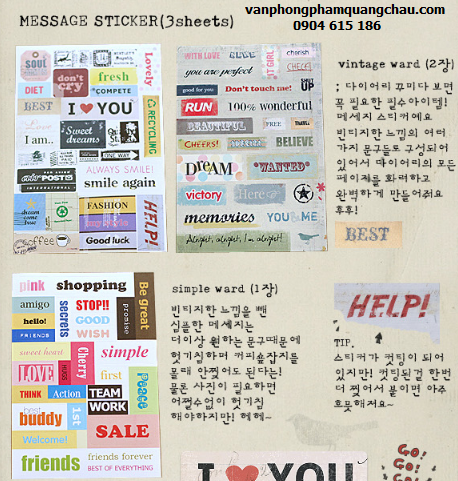 Chất liệu: giấy. Sticker có sẵn keo dán, bạn chỉ việc gỡ ra và dán trang trí tùy thích. Có thể dùng trang trí scrapbook, album ảnh dán, điện thoại, ipad, sổ tay, sổ nhật ký, niêm phong bì thư, trang trí hộp quà, thiệp handmade, hộp bánh và rất nhiều công dụng hay ho khác tùy theo sự sáng tạo của bạn.