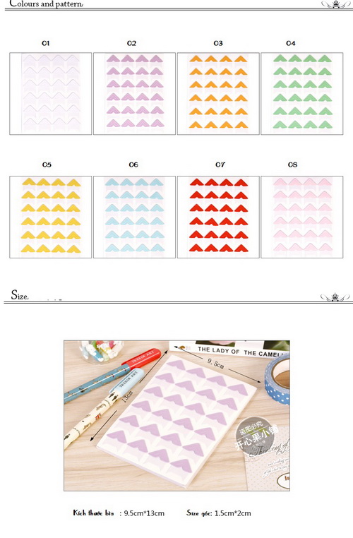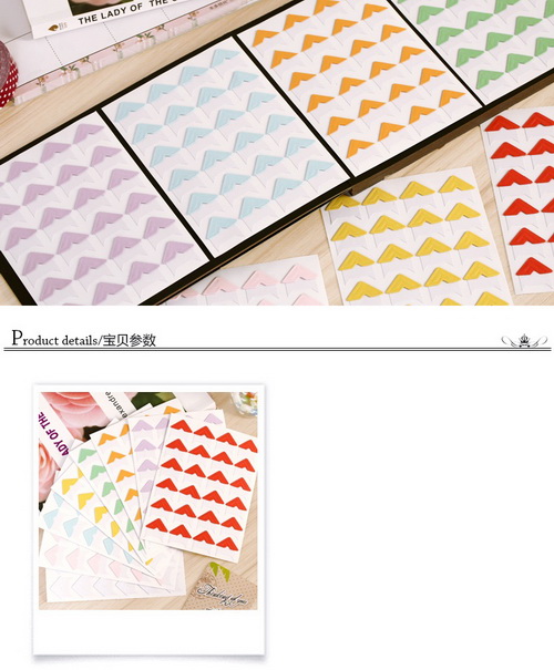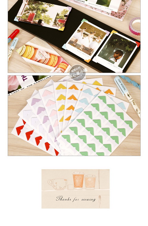 Bảng sticker góc có 24 miếng, có thể sử dụng cho 6 ảnh - với ảnh dán 4 góc, cho 12 ảnh dán 2 góc