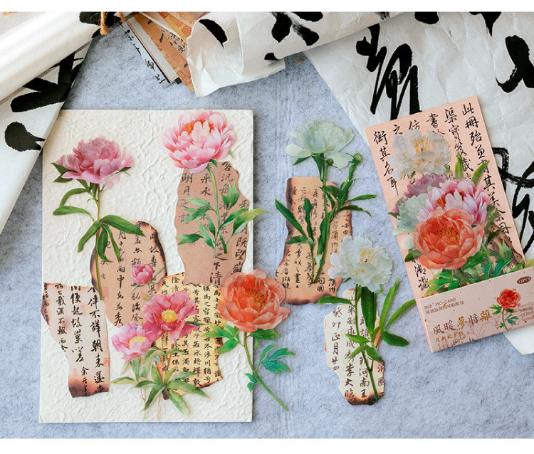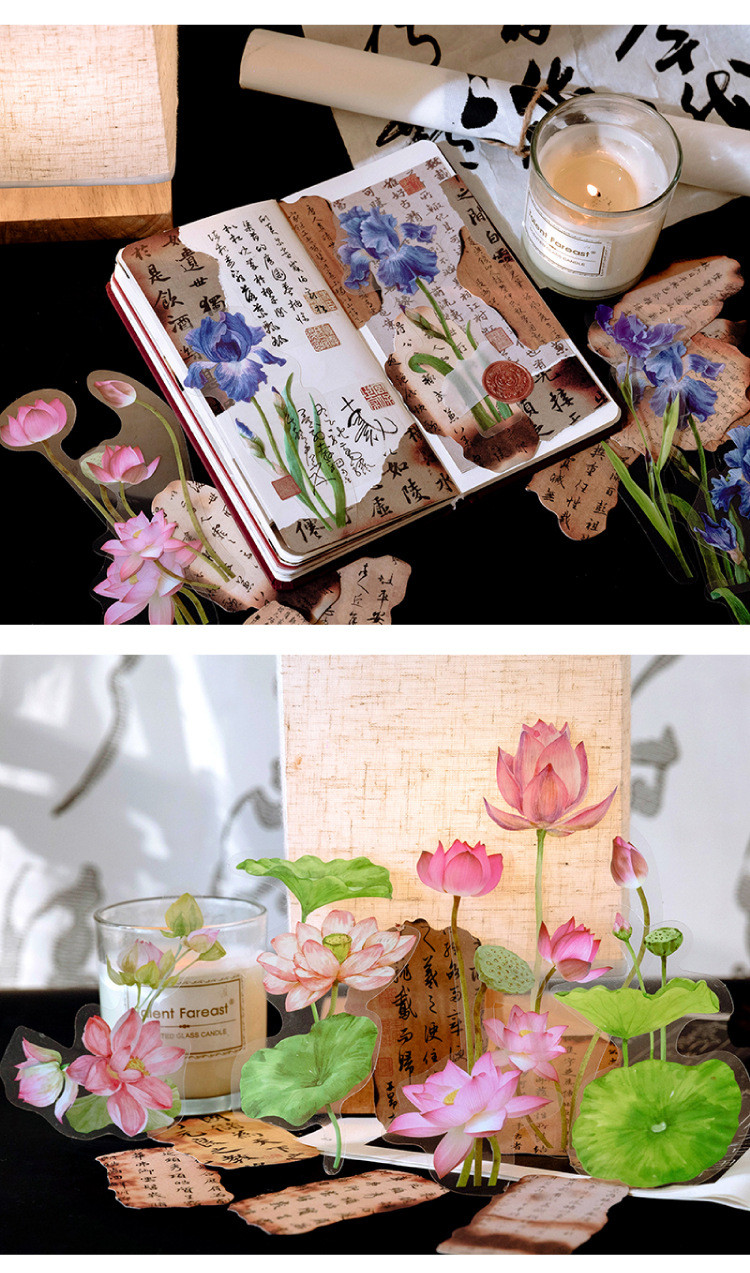 Sticker PET chủ đề hoa sen, hoa hồng, mẫu đơn