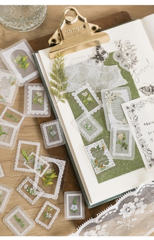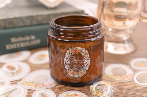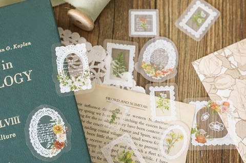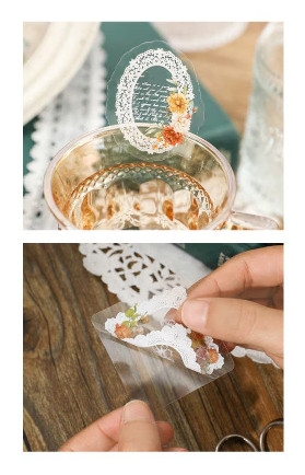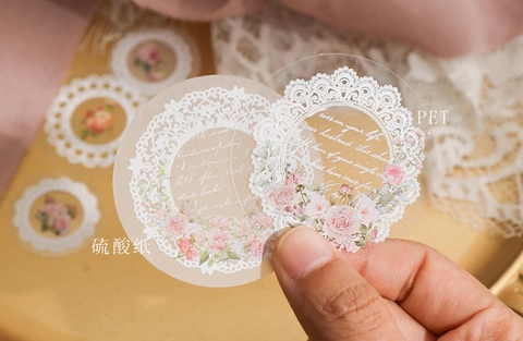 Sticker PET họa tiết hoa viền ren trắng xinh yêu
