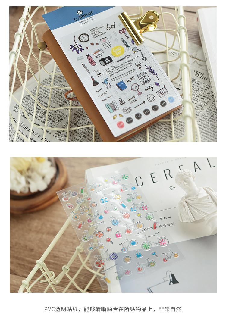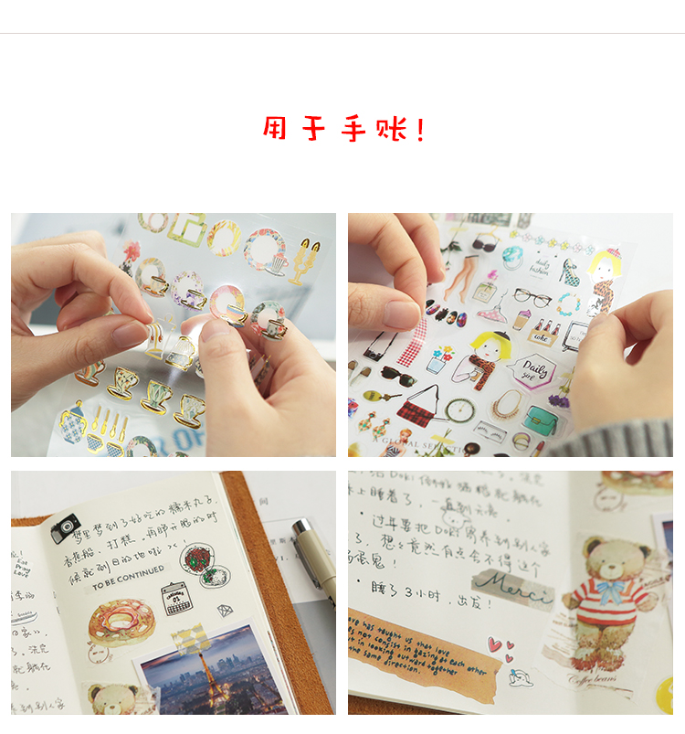 Sticker có sẵn keo dán, bạn chỉ việc gỡ ra và dán trang trí tùy thích. Có thể dùng trang trí scrapbook, album ảnh dán, điện thoại, ipad, sổ tay, sổ nhật ký, niêm phong bì thư, trang trí hộp quà, thiệp handmade, hộp bánh và rất nhiều công dụng hay ho khác tùy theo sự sáng tạo của bạn.