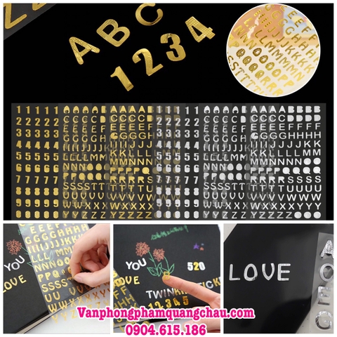 Có 2 màu nhũ bạc và nhũ vàng, mẫu có chữ và số để lựa chọn.