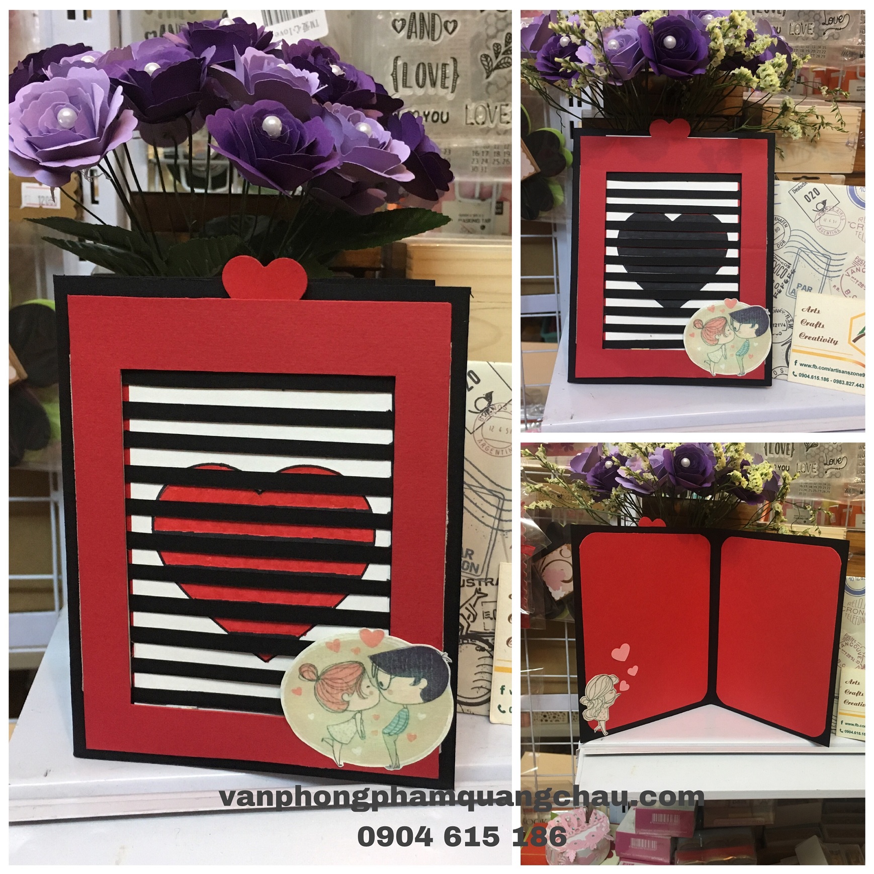 Thiệp được thiết kế độc đáo, có thế đổi màu tim khi bạn kéo lên hoặc xuống.