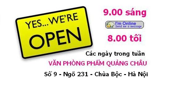 Kể từ ngày 11/6/2012 - Cửa hàng đại diện Hà Nội - Văn Phòng Phẩm Quảng Châu tại số 9 ngõ 231 Chùa Bộc chính thức mở cửa cả ngày.