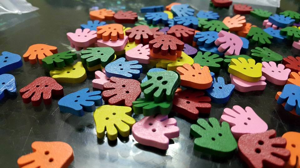 Túi cúc gỗ bàn tay sắc màu (14 cúc)_CH15