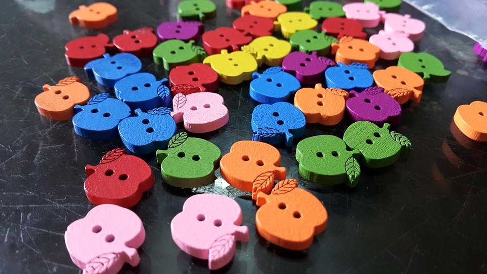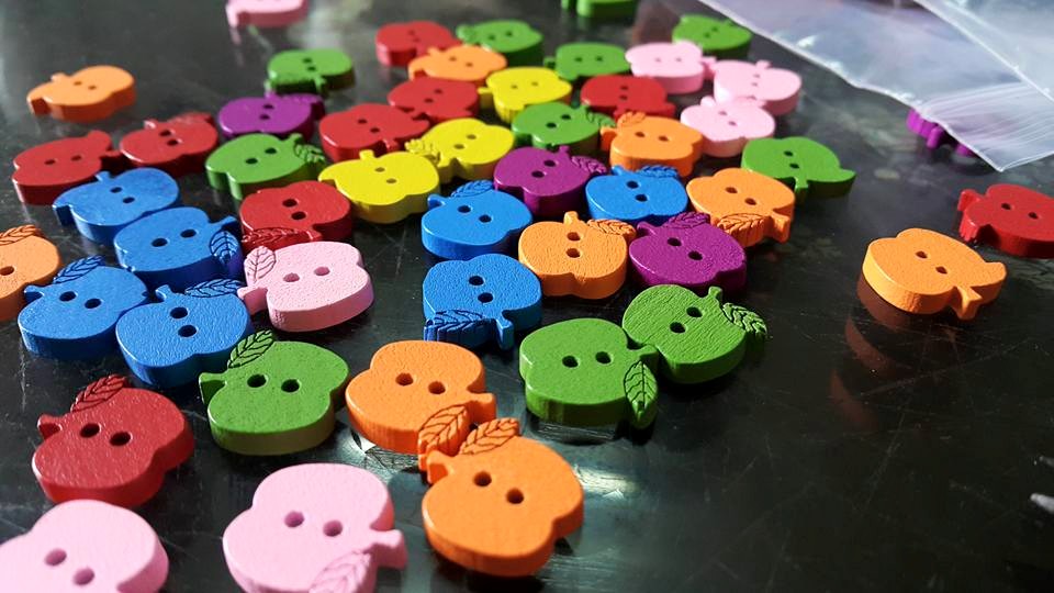 Chất liệu: Cúc gỗ, dùng thiết kế và trang trí