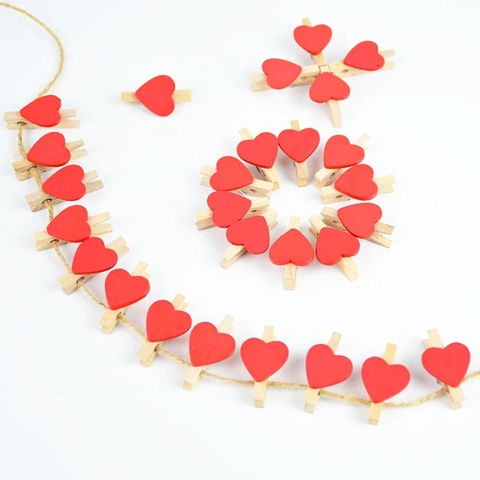 Kẹp gỗ tim size siêu bé xinh kèm dây, nhưng vẫn có thể kẹp được ảnh và rất dễ gắn các hình trang trí lên trên.